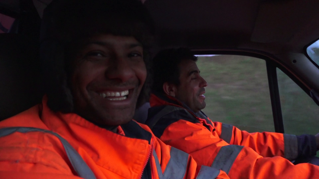 Chaque voiture est un microcosme. Est-ce que le présent nous inquiète de la même manière ? Pourrons-nous nous comprendre dans des langues différentes ? Un hôtel est-il un refuge temporaire ou une maison pour les étrangers ? Toutes ces rencontres sur la petite route 104.