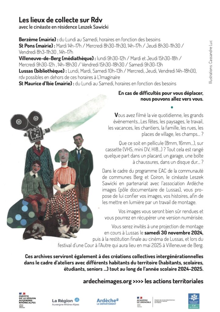 En octobre 2024, dans le cadre du programme EAC de la communauté de communes Berg et Coiron, Ardèche images confie au cinéaste Leszek Sawicki une grande collecte d’archives filmées amateures à travers les 12 villages de Berg et Coiron.