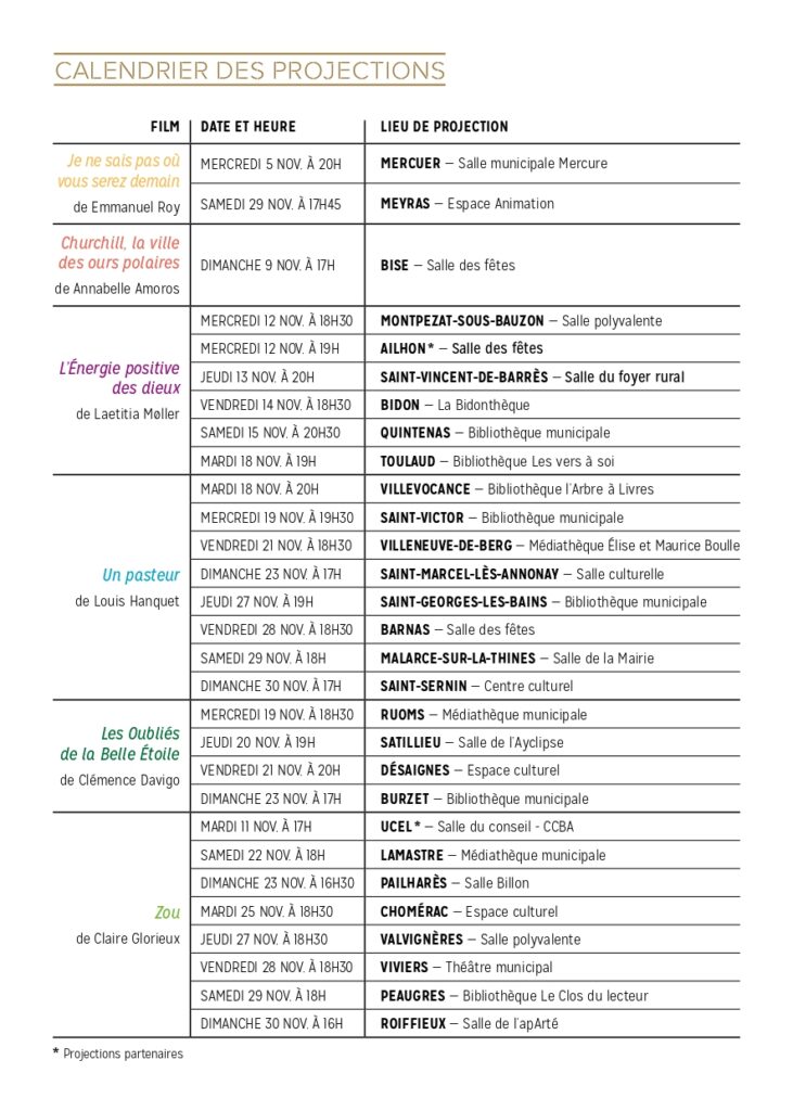 Ardèche Images en partenariat avec la Médiathèque départementale de l’Ardèche participe au Mois du Film Documentaire en proposant des projections gratuites dans les bibliothèques ardéchoises et d’autres lieux culturels partenaires. Chaque projection est suivie d’une rencontre avec le réalisateur ou un membre de l’équipe du film.